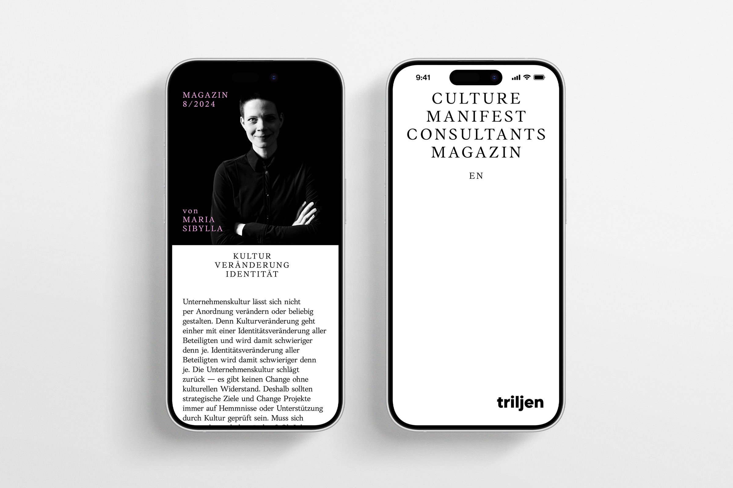 Brand design and corporate design for corporate culture consulting agency triljen. Concept and design on behalf of DWFB GmbH.
